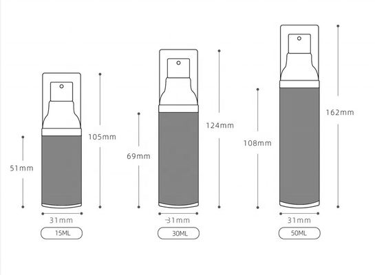 30ml 50ml μεταλλινών μαύρα Spary πλαστικά καλλυντικά εμπορευματοκιβώτια μπουκαλιών μπουκαλιών κενά