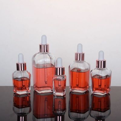 Διαφανή Dropper γυαλιού ουσιαστικού πετρελαίου 1/2~3OZ τετραγωνικά καλλυντικά εμπορευματοκιβώτια γυαλιού μπουκαλιών
